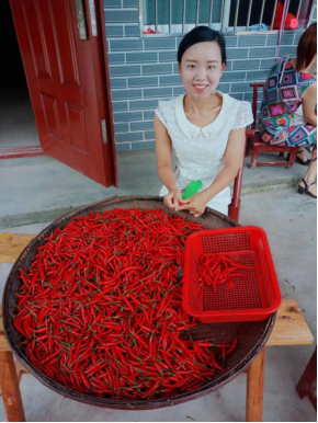 (胡春燕在准备辣椒)