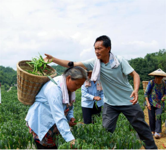 我总共流转了300多亩土地种辣椒,自己做不过来,就发动村民一起做。