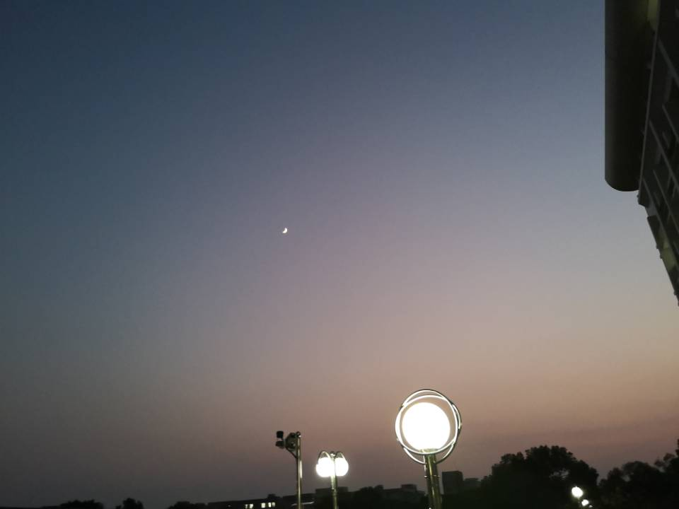 还记得吗?每到考试周的时候,图书馆里满满都坐着捧着书或朗读或研学的同学,考研党和期末党都在这里为自己的目标而努力着。而每每到黄昏日落时,学了一整天的同学们会在饭前饭后拥有这样温柔的陪伴。月牙隐隐约约露了贝齿,仿佛在朝这一群可爱的人笑——加油吖,你可以的!